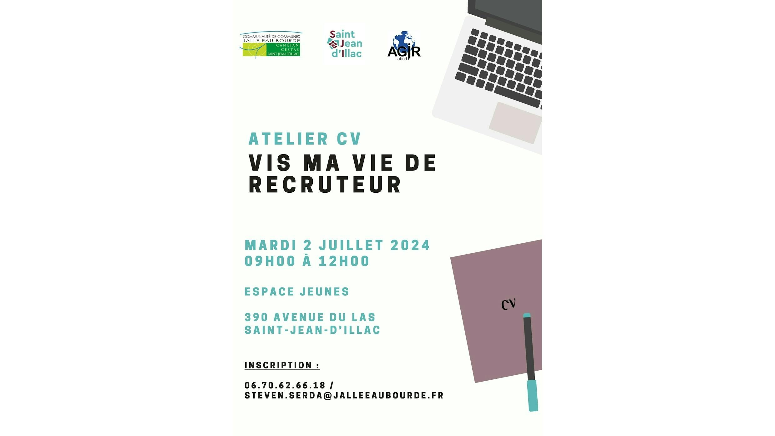 Avec le service Emploi de la CDC Jalle Eau Bourde, participez un atelier CV le mardi 02 juillet prochain.