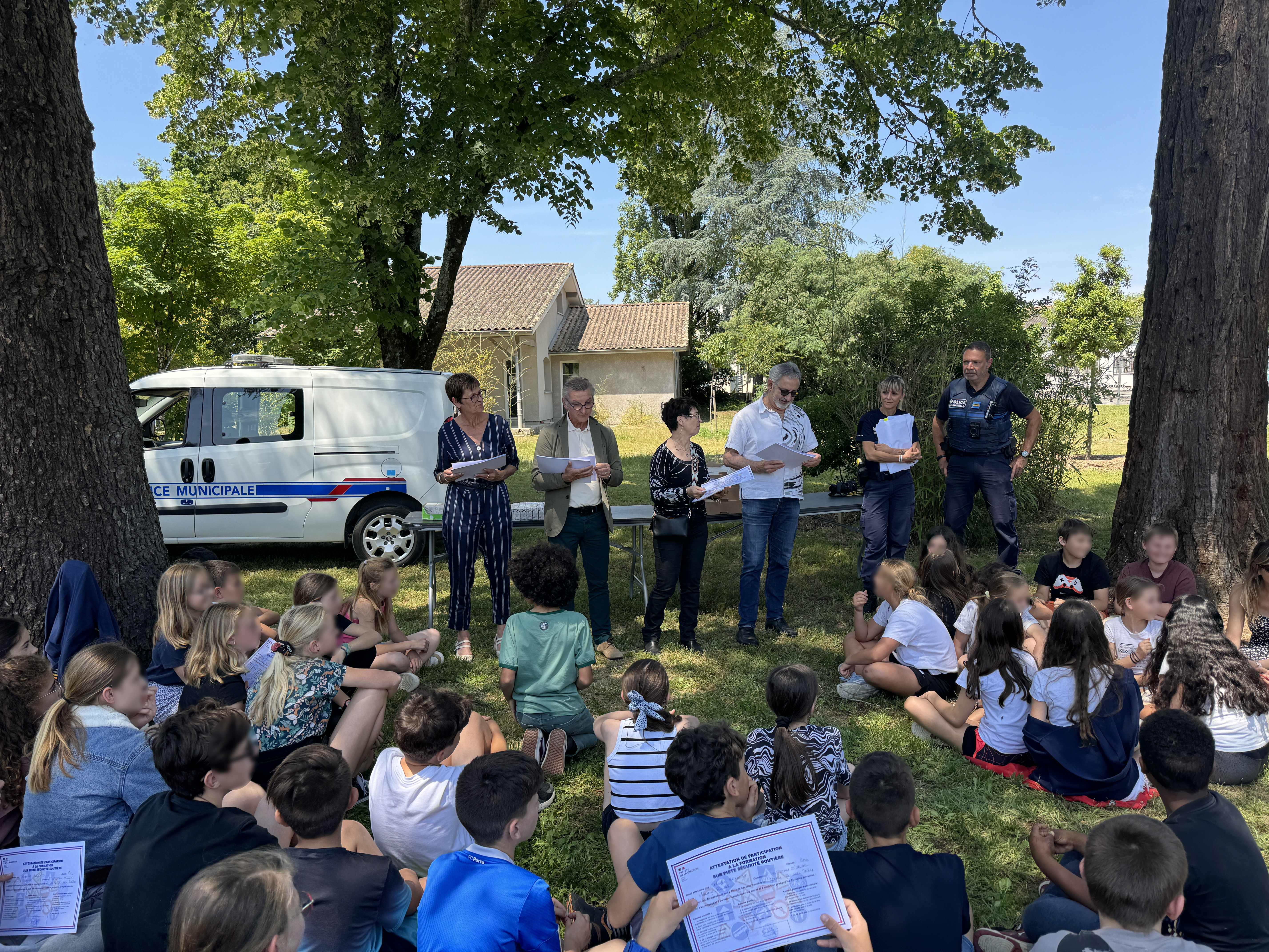 Après plusieurs ateliers théoriques et pratiques avec la police municipale, les élèves de CM2 des écoles élémentaires de la ville ont été invités, cet après-midi, à recevoir leurs attestations 🎓 de formation sur piste de sécurité routière.🚴♂️