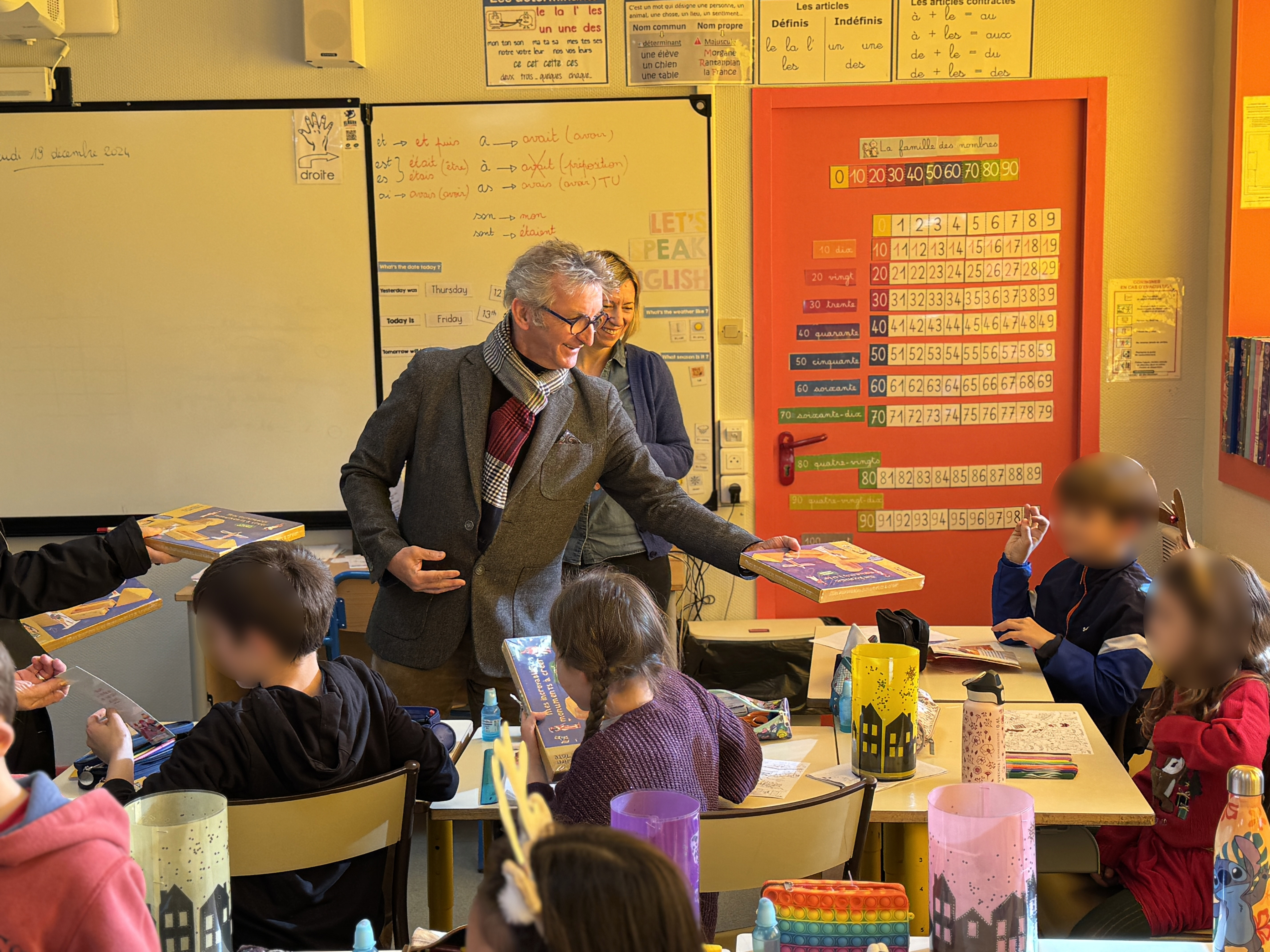 Toujours aussi chaleureux et blagueur, le Père Noël a pris le temps d'échanger avec chaque enfant avant de leur offrir un livre 📖 et un chocolat🍫. Du côté des plus grands, le maire, aux côtés d'élus, a également offert différentes lectures à nos jeunes écoliers !