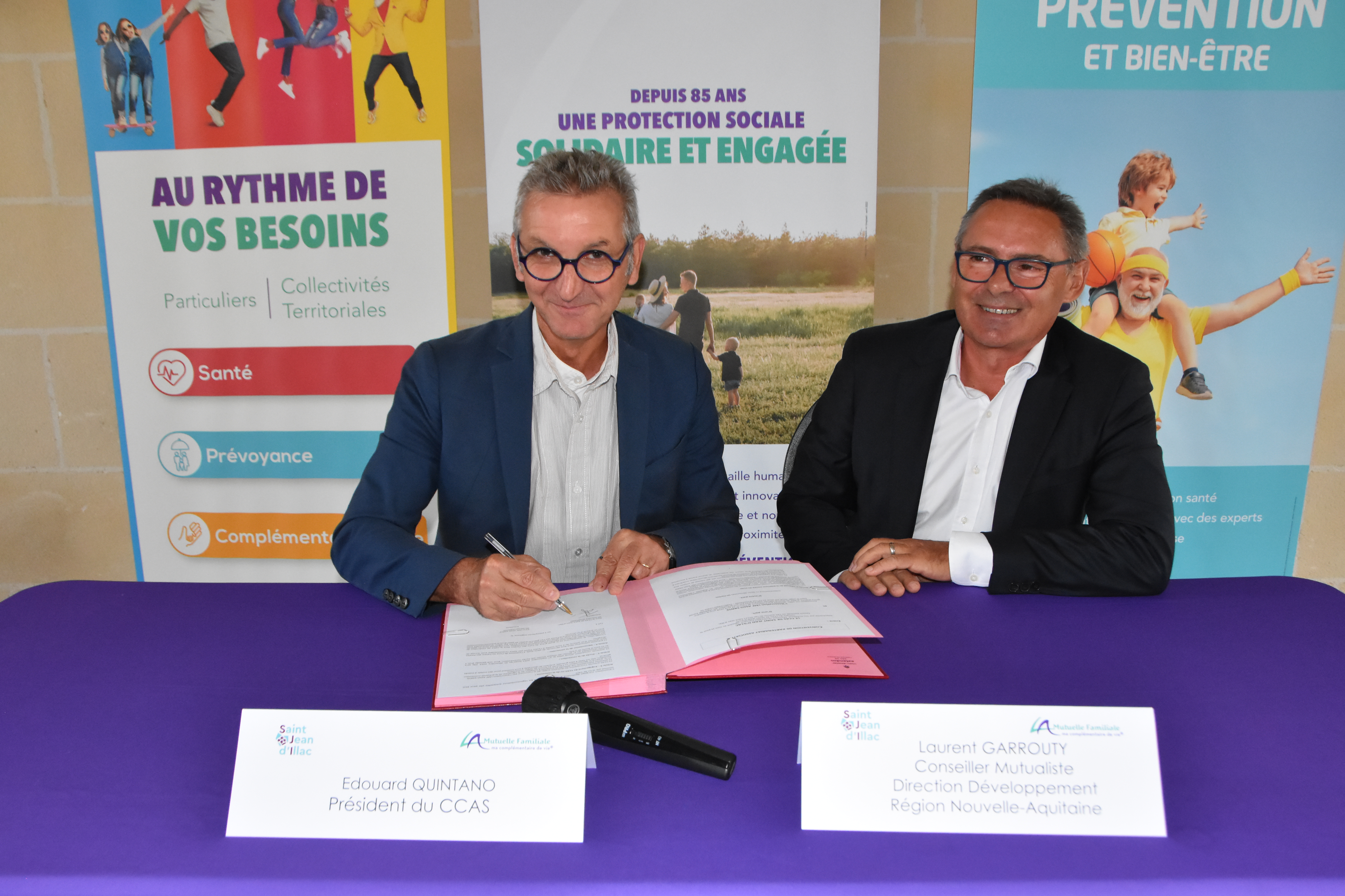 Hier soir, le maire Édouard Quintano et M. Garrouty ont signé une convention de partenariat avec La Mutuelle Familiale. La signature était suivie d'une réunion d'information sur les modalités d'adhésion.