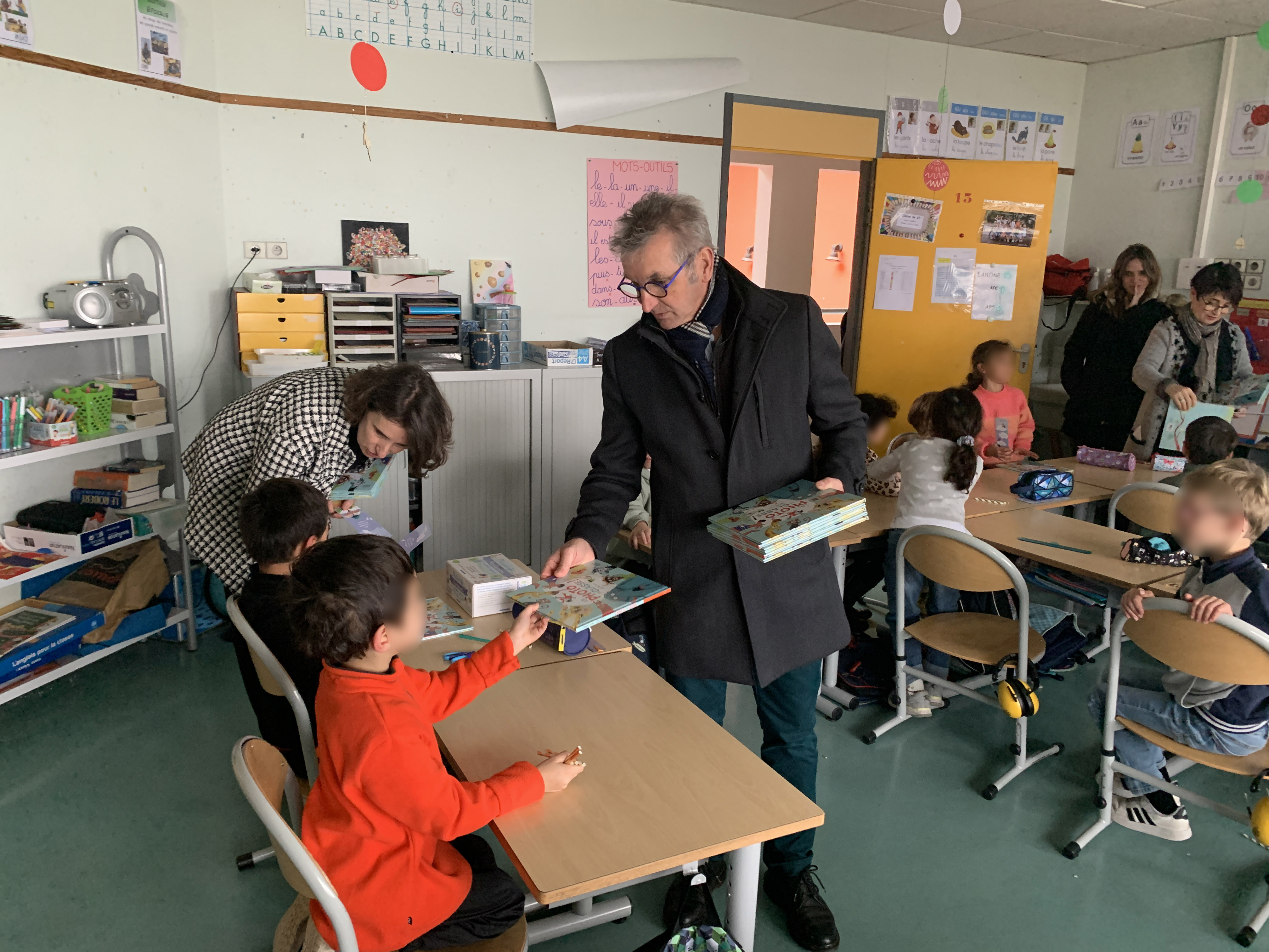 Pour les plus grands, monsieur le Maire et des élus de la délégations Accompagnement des familles ont distribué de beaux livres dans les classes.