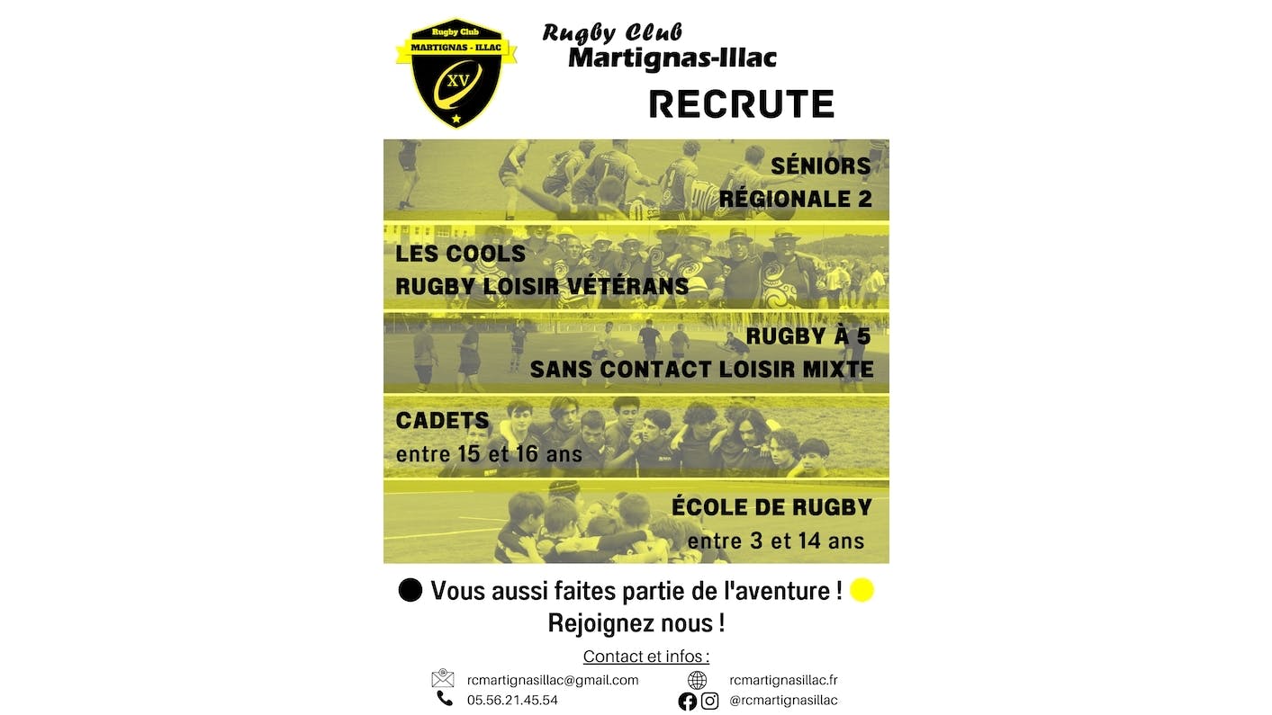 Visiter son espaceLe contenu de cet article est rédigé sous la responsabilité de RUGBY CLUB MARTIGNAS ILLAC